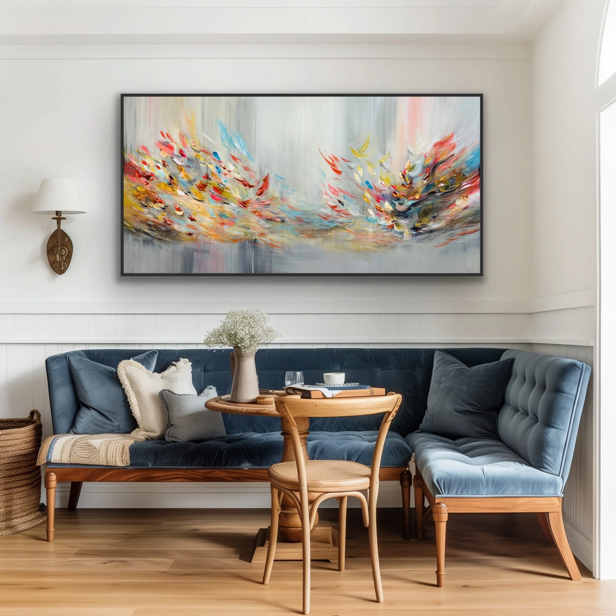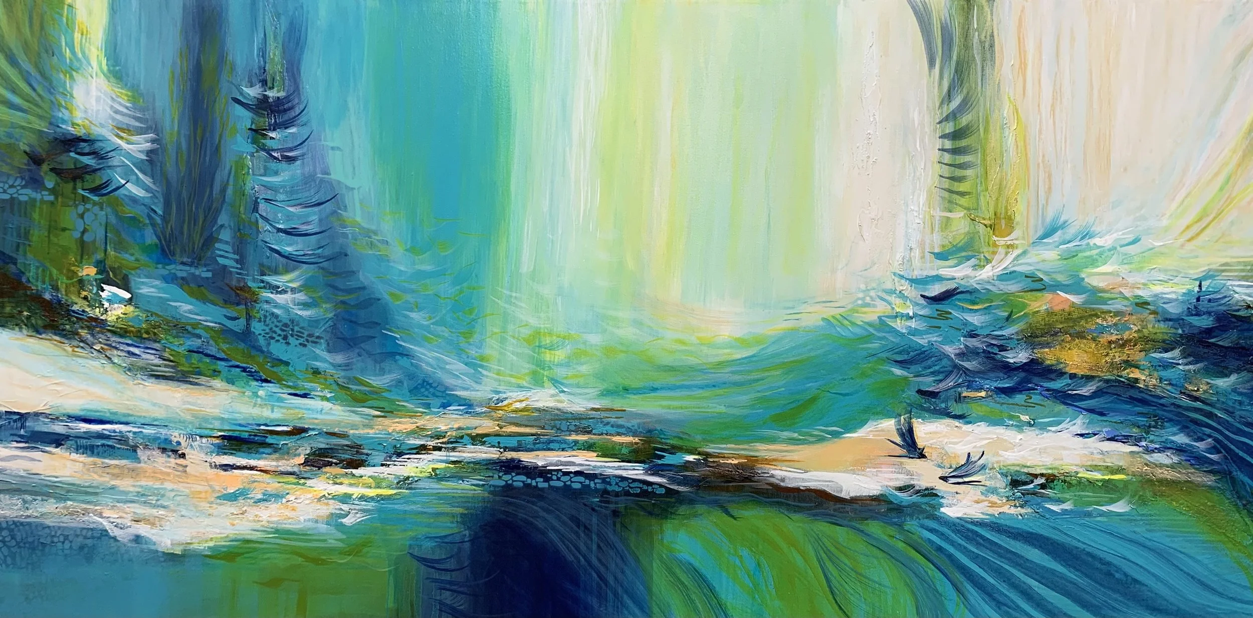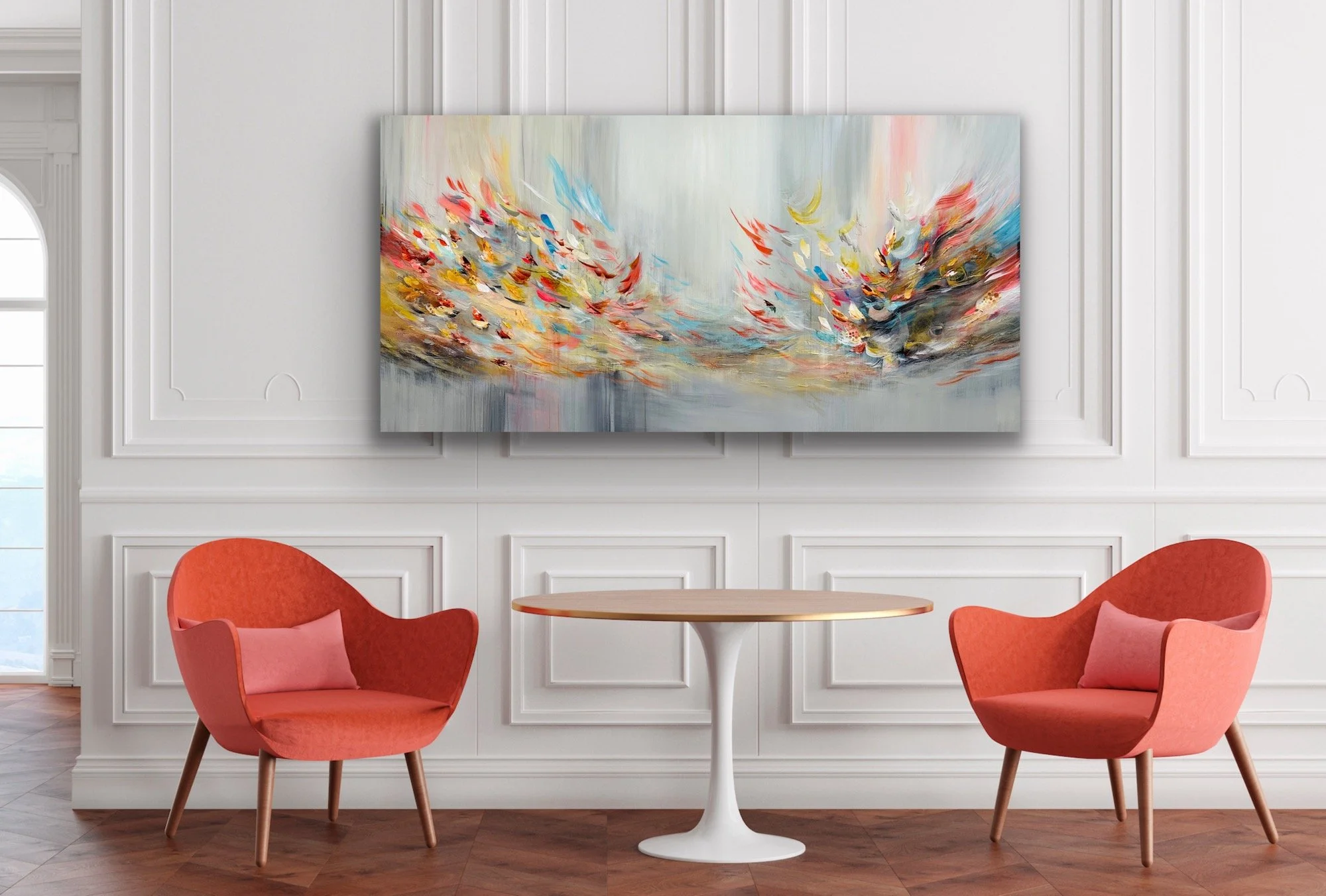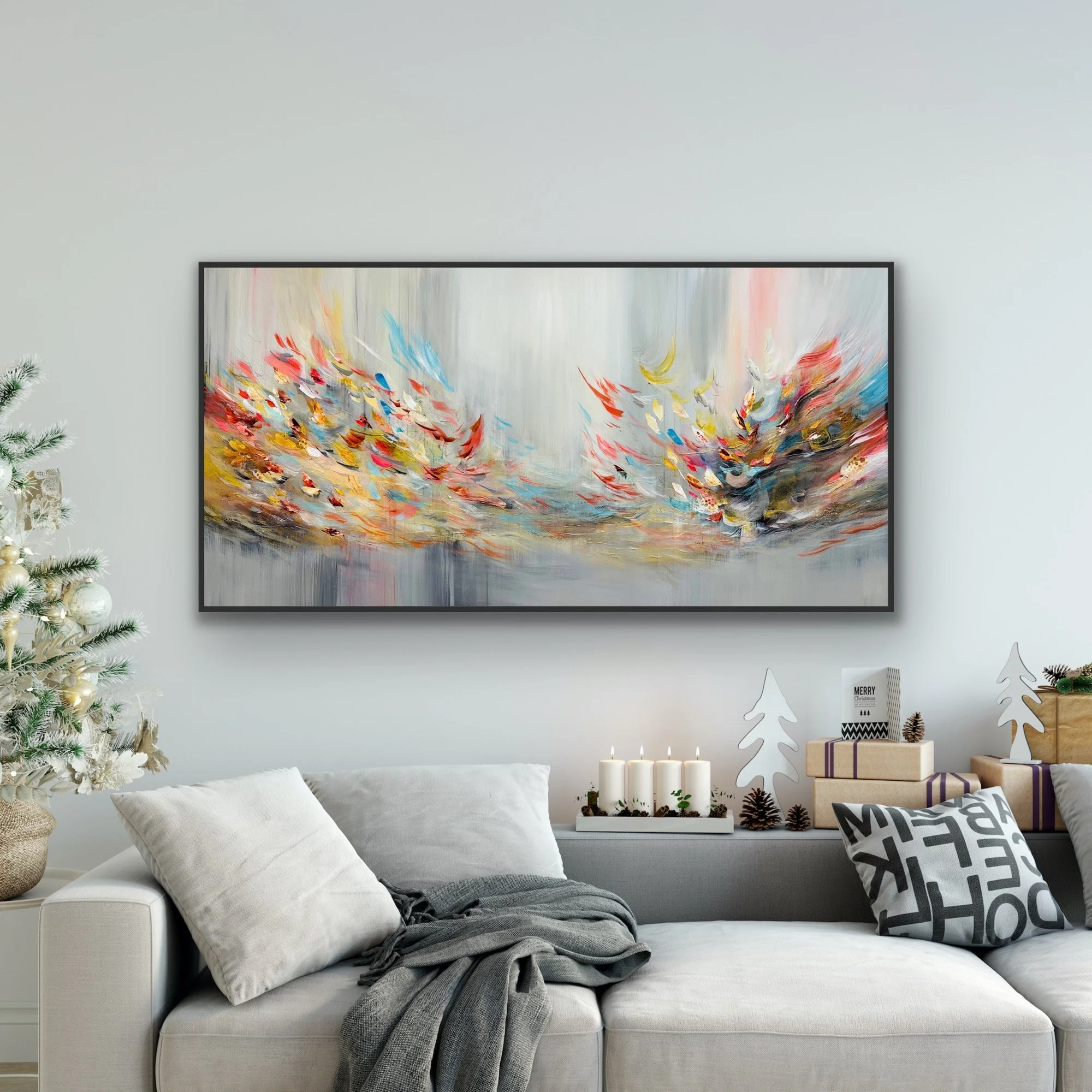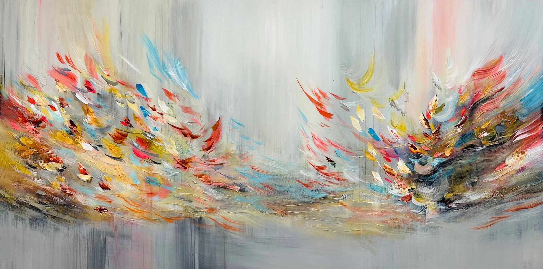 A atmospheric abstract that blends deep charcoals, soft whites, and warm amber tones. Textured layers and subtle patterns drift across the canvas, creating a sense of movement and quiet luminosity. The piece feels like a passage between shadow and light — calm, expressive, and beautifully balanced.